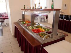 Что касается инфраструктуры то отдыхающие могут пользоваться открытым бассейном, услугами детской комнаты. Для гостей проводятся анимационные программы для всех возрастных категории, а также пешеходные экскурсии по городу. На пляж отдыхающих возит автобус – рейсы отправляются каждые полчаса, так что посещение пляжа более чем комфортное. На собственном галечномобустроены кабинки для переодевания, есть лежаки, навесы, благоустроенный туалет.