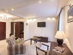Все номера имеют отдельный санузел с ванной и туалетными принадлежностями, феном. В номерах категории «студио» в санузлах есть и халаты. Ежедневно проводится уборка номеров, и смена полотенец, постельное белье меняется один раз в 3 дня.