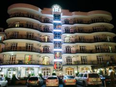 Отель «Royal» расположен в 350 м от песчаного пляжа и представляет собой красивое и комфортабельное шестиэтажное здание в современном стиле с ухоженной, огороженной и охраняемой территорией. Кроме того, здесь есть автостоянка, а само здание оснащено лифтом. При этом гостевой дом имеет исключительно удачное местоположение, так как находится всего в пяти минутах ходьбы от парка «Паралия», в 350 м до аквапарка «Олимпия» и в 350 м до дельфинария «Немо».