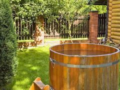 Эта гостиница имеет особую отличительную черту – в каждом номере есть русская баня, которая предоставляется в распоряжение отдыхающих, и камин. Дрова можно брать, сколько угодно, и проводить прекрасно время хоть целый день. В номере есть двуспальная кровать, телевизор, холодильник, набор посуды и санузел с душем.