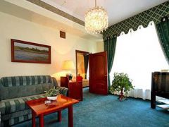 Отель состоит из одного пятиэтажного здания, в котором всего 70 номеров. В отеле запрещен заезд с животными. На территории отеля есть бизнес-центр, работает сувенирный магазин, массажный кабинет. Желающие изменить свой имидж и стиль, могут заглянуть в парикмахерскую. По уходу за одеждой работают химчистка и прачечная. Проживание на территории отеля осуществляется в номерах типа стандартный двухместный, улучшенный двухместный, люкс мэра двухместный, люкс президентский двухместный, люкс марко поло двухместный, люкс губернаторский двухместный, люкс Джейн двухместный. Двухместный стандартный номер предусматривает установку двух односпальных кроватей либо одной двуспальной, подключения индивидуальной системы обогрева, системы общего кондиционирования. Наличие в номере сейфа и телевизора. В санузле есть ванна и душевая кабина, шапочки, фен и халат. В номере есть мини-бар. В улучшенном номере на два места есть спутниковое телевиденье.