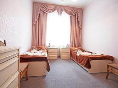 В санатории можно проживать самостоятельно или с детьми от 4 лет. Он состоит из двух корпусов и VIP-пансионата, именуемого «Дачей космонавтов». Вместительность главного корпуса составляет 210 человек, а дополнительного – 58. Вы можете разместиться в двухместном или одноместном стандарте или номере класса «Люкс», в которых есть удобные спальные места, телевизоры и холодильники. «Дача Космонавтов» располагается непосредственно в курортном парке и состоит из 6 номеров класса «Люкс», а также отдельной столовой, сауны, бассейна и нарзанных ванн.