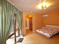 Двухэтажное П-образное здание полностью выполнено из деревянного бруса по уникальной технологии из экологически чистого материала.