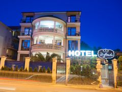 Отель состоит из одного четырехэтажного здания, к которому прилегает зона кафе.