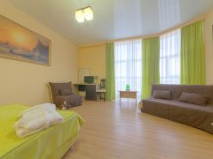 Расстояние: до аэропорта 9 км, до бювета 500 м, до ж/д вокзала 8 км, до моря 500 м, до пляжа 400 м, до центра 19 км.