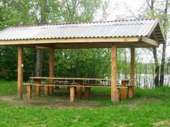 На берегу реки, в 100 м от корпусов, оборудована пляжная зона. Рядом с пляжем расположена площадка для пляжного волейбола и футбола, установлен стол для настольного тенниса, есть водная горка и вышка для ныряния.