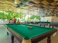 Для детей – аттракционы, детская площадка, детский бассейн, детский бассейн с горками, детский зал питания, детский клуб, детский сад, игровая комната с воспитателем, игровая площадка, игровой комплекс, компьютерный клуб; Прокат: детская коляска, детские велосипеды, детские кроватки, детский стульчик в зале питания, самокаты; Развлечения: боча, дартс, детская анимация, настольные игры; Сервис: детское меню.
