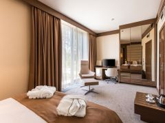 К вашим услугам – закрытые от посторонних глаз субтропической зеленью – виллы с собственным садом и бассейном, элегантные номера и просторный пляж. А также – ресторан и бар, конференц-зал и переговорная, охраняемая парковка, спа-центр с аква-зоной и аттракционами, термальным комплексом, крытым и открытым бассейнами и тренажёрным залом. В тёплое время года работают летняя терраса ресторана и бара.